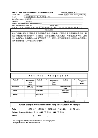 REKOD BACAAN MURID SEKOLAH MENENGAH Tarikh: 06/08/2021