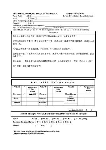 REKOD BACAAN MURID SEKOLAH MENENGAH Tarikh: 06/08/2021