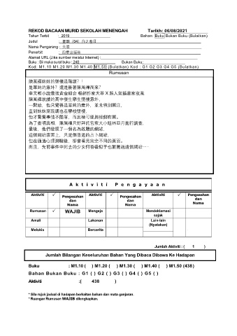 REKOD BACAAN MURID SEKOLAH MENENGAH Tarikh: 06/08/2021
