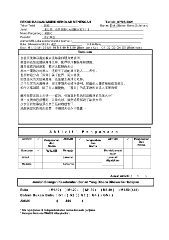 REKOD BACAAN MURID SEKOLAH MENENGAH Tarikh: 07/08/2021
