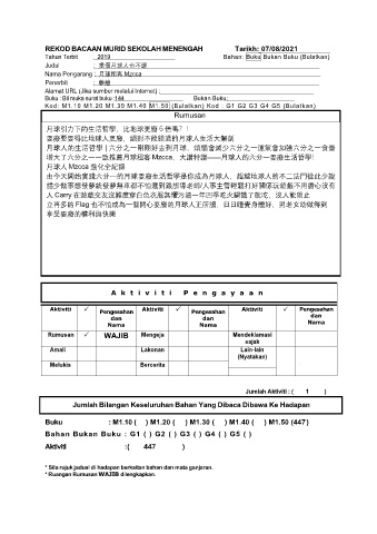 REKOD BACAAN MURID SEKOLAH MENENGAH Tarikh: 07/08/2021