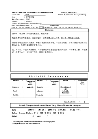 REKOD BACAAN MURID SEKOLAH MENENGAH Tarikh: 07/08/2021