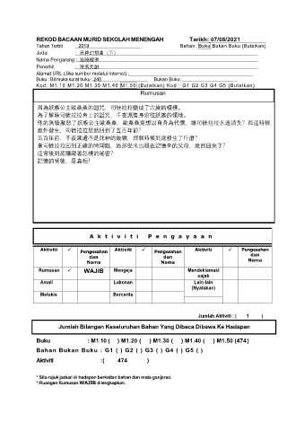 REKOD BACAAN MURID SEKOLAH MENENGAH Tarikh: 07/08/2021