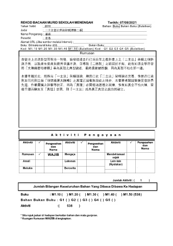 REKOD BACAAN MURID SEKOLAH MENENGAH Tarikh: 07/08/2021