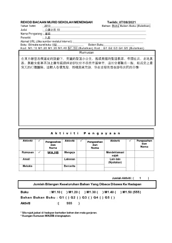 REKOD BACAAN MURID SEKOLAH MENENGAH Tarikh: 07/08/2021