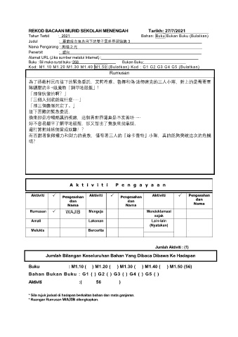 REKOD BACAAN MURID SEKOLAH MENENGAH Tarikh: 27/7/2021