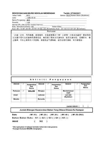 REKOD BACAAN MURID SEKOLAH MENENGAH Tarikh: 07/08/2021