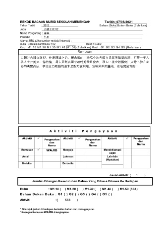 REKOD BACAAN MURID SEKOLAH MENENGAH Tarikh: 07/08/2021