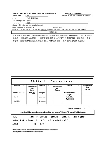 REKOD BACAAN MURID SEKOLAH MENENGAH Tarikh: 07/08/2021