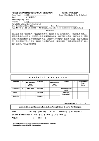 REKOD BACAAN MURID SEKOLAH MENENGAH Tarikh: 07/08/2021
