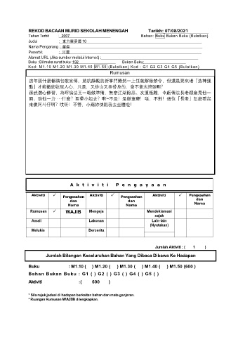 REKOD BACAAN MURID SEKOLAH MENENGAH Tarikh: 07/08/2021