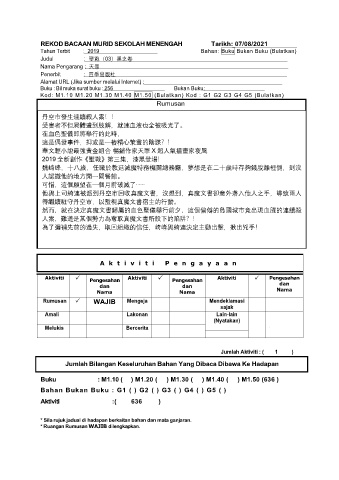 REKOD BACAAN MURID SEKOLAH MENENGAH Tarikh: 07/08/2021