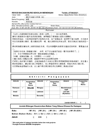 REKOD BACAAN MURID SEKOLAH MENENGAH Tarikh: 07/08/2021