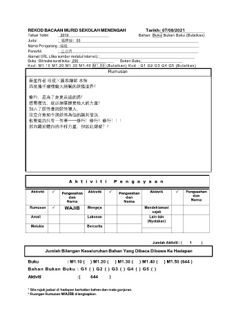 REKOD BACAAN MURID SEKOLAH MENENGAH Tarikh: 07/08/2021