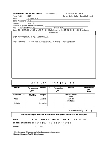 REKOD BACAAN MURID SEKOLAH MENENGAH Tarikh: 08/08/2021
