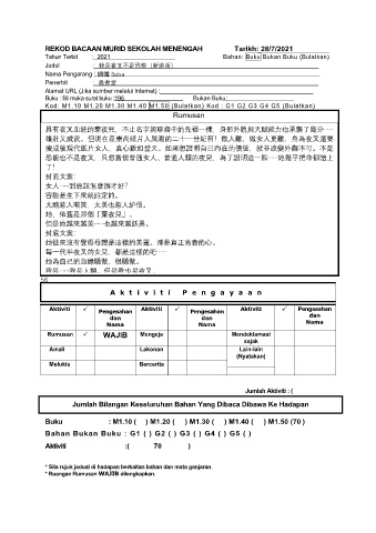 REKOD BACAAN MURID SEKOLAH MENENGAH Tarikh: 28/7/2021