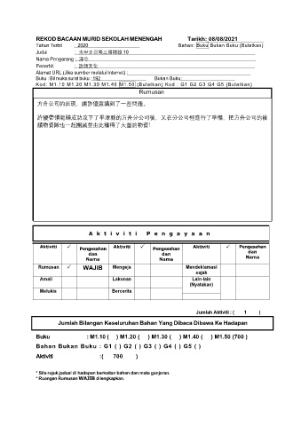 REKOD BACAAN MURID SEKOLAH MENENGAH Tarikh: 08/08/2021