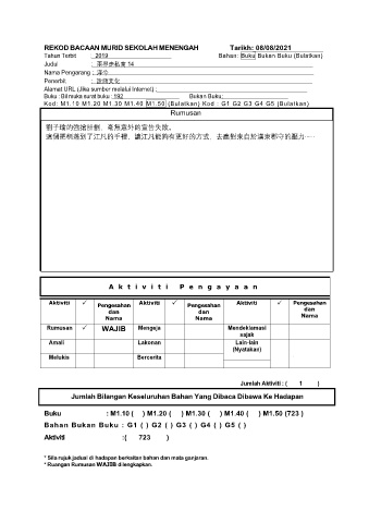 REKOD BACAAN MURID SEKOLAH MENENGAH Tarikh: 08/08/2021