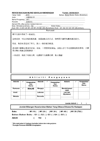 REKOD BACAAN MURID SEKOLAH MENENGAH Tarikh: 08/08/2021