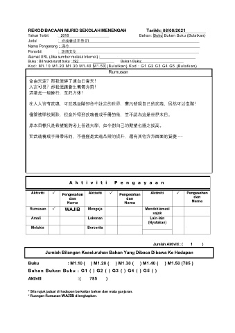 REKOD BACAAN MURID SEKOLAH MENENGAH Tarikh: 08/08/2021
