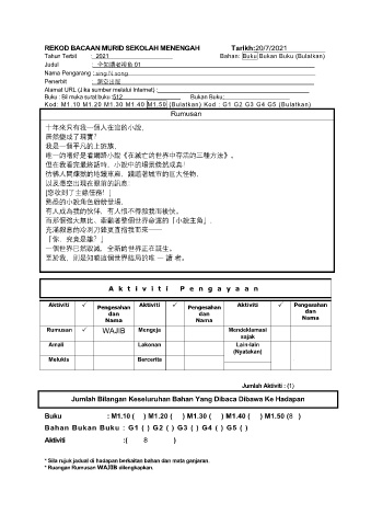 REKOD BACAAN MURID SEKOLAH MENENGAH Tarikh:20/7/2021