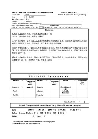 REKOD BACAAN MURID SEKOLAH MENENGAH Tarikh: 11/08/2021
