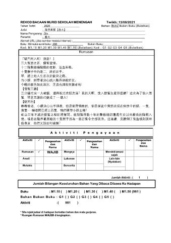 REKOD BACAAN MURID SEKOLAH MENENGAH Tarikh: 13/08/2021