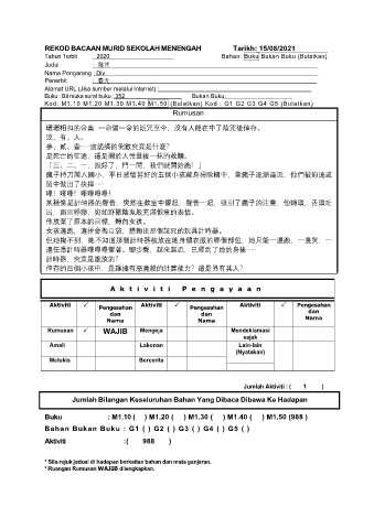 REKOD BACAAN MURID SEKOLAH MENENGAH Tarikh: 15/08/2021