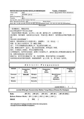 REKOD BACAAN MURID SEKOLAH MENENGAH Tarikh: 17/08/2021