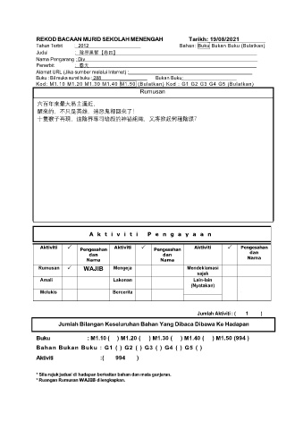 REKOD BACAAN MURID SEKOLAH MENENGAH Tarikh: 19/08/2021