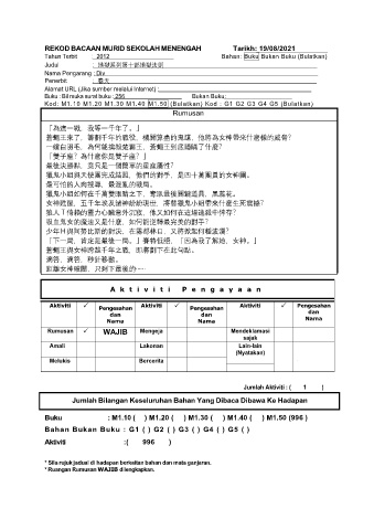 REKOD BACAAN MURID SEKOLAH MENENGAH Tarikh: 19/08/2021