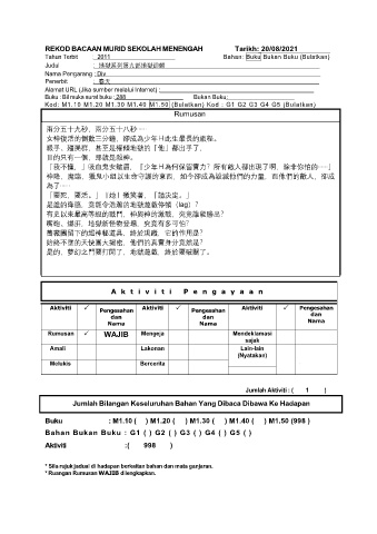 REKOD BACAAN MURID SEKOLAH MENENGAH Tarikh: 20/08/2021