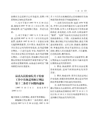 ( 1997 年 10 月 6 日 高 检 发 释 字 修订刑法认为是犯罪的, 适用当时的法律;
