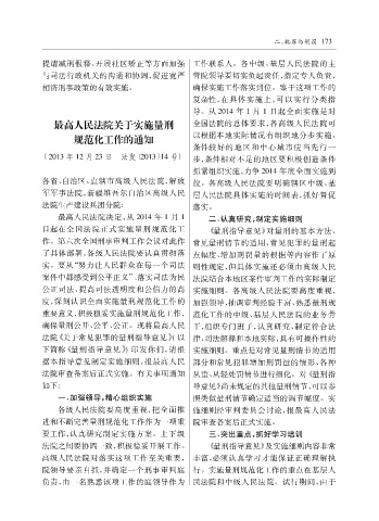 最高人民法院决定, 从 2014 年 1 月 1 二、 认真研究, 制定实施细则