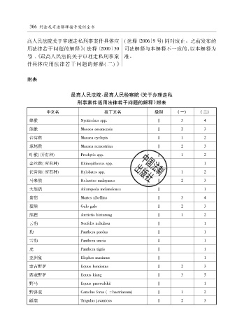 刑事案件适用法律若干问题的解释》 附表