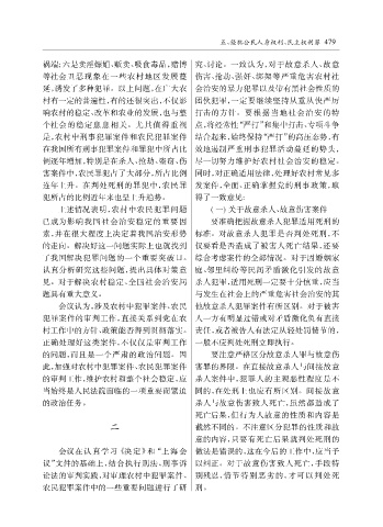 会议认为, 涉及农村中犯罪案件、 农民 他故意杀人犯罪案件有所区别。对于被害
