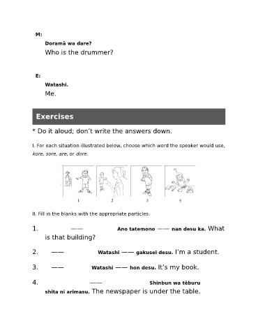 II. Fill in the blanks with the appropriate particles.