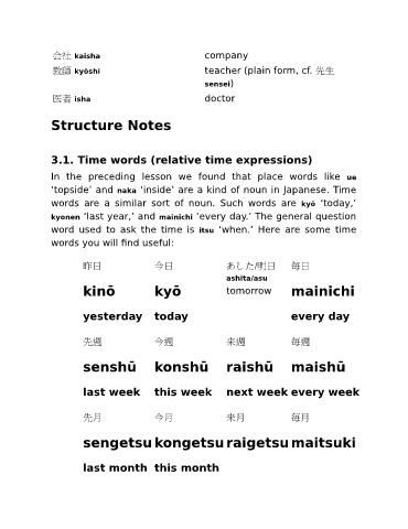 words are a similar sort of noun. Such words are kyō ‘today,’