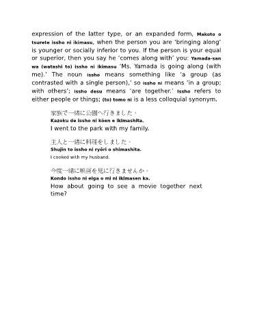 me).’ The noun issho means something like ‘a group (as