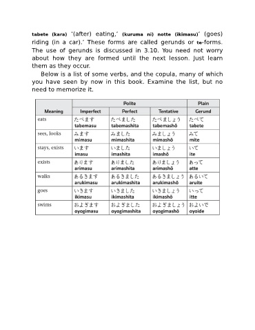 riding (in a car).’ These forms are called gerunds or te-forms.