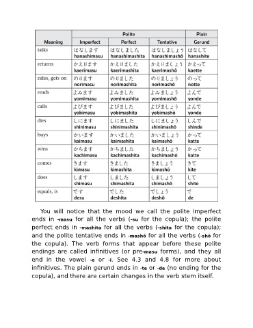 perfect ends in -mashita for all the verbs (-shita for the copula);