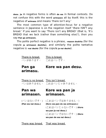 (Pan wa nai desu.) (Kore wa pan de wa arimasen.)