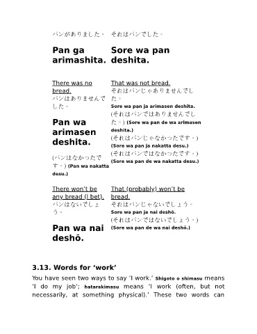 Pan wa た。) (Sore wa pan de wa arimasen