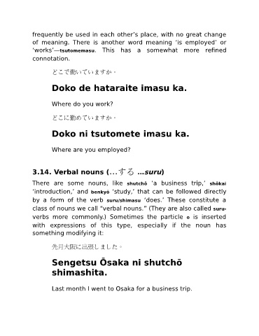 by a form of the verb suru/shimasu ‘does.’ These constitute a