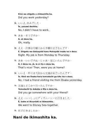 S: いいえ。昨日は大阪から友達が来ていたんです。