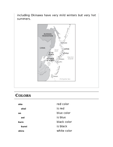 including Okinawa have very mild winters but very hot summers. COLORS aka red color akai is red ao blue color aoi is blue kuro black color kuroi is black shiro white color