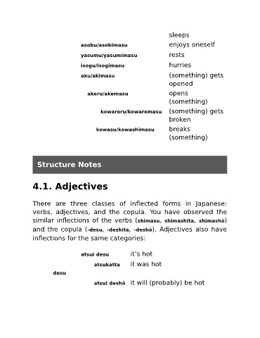 and the copula (-desu, -deshita, -deshō). Adjectives also have