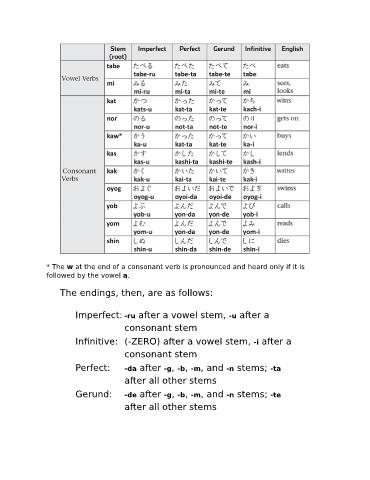 * The w at the end of a consonant verb is pronounced and heard only if it is