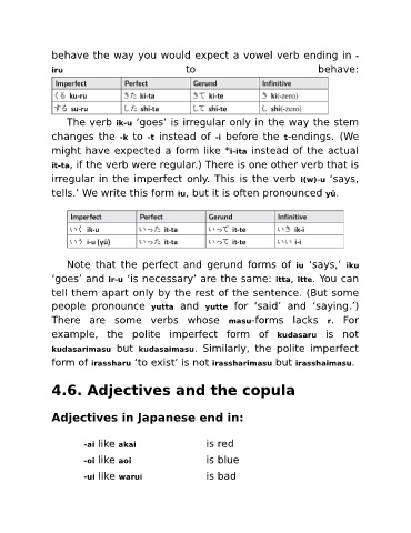 The verb ik-u ‘goes’ is irregular only in the way the stem