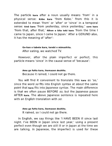 point that kara fits into Japanese syntax. The main difference
